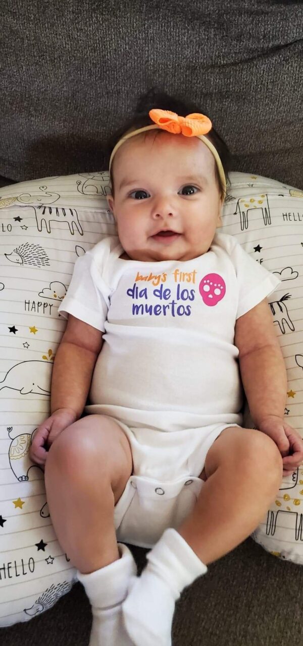 Help capture those precious memories with Baby’s First Dia de los Muertos bodysuit! Perfect Baby Shower Gift for the parents-to-be (or to buy for your own precious one). All socks & bodysuits are made from high quality Onesies® brand (by Gerber®) clothing.