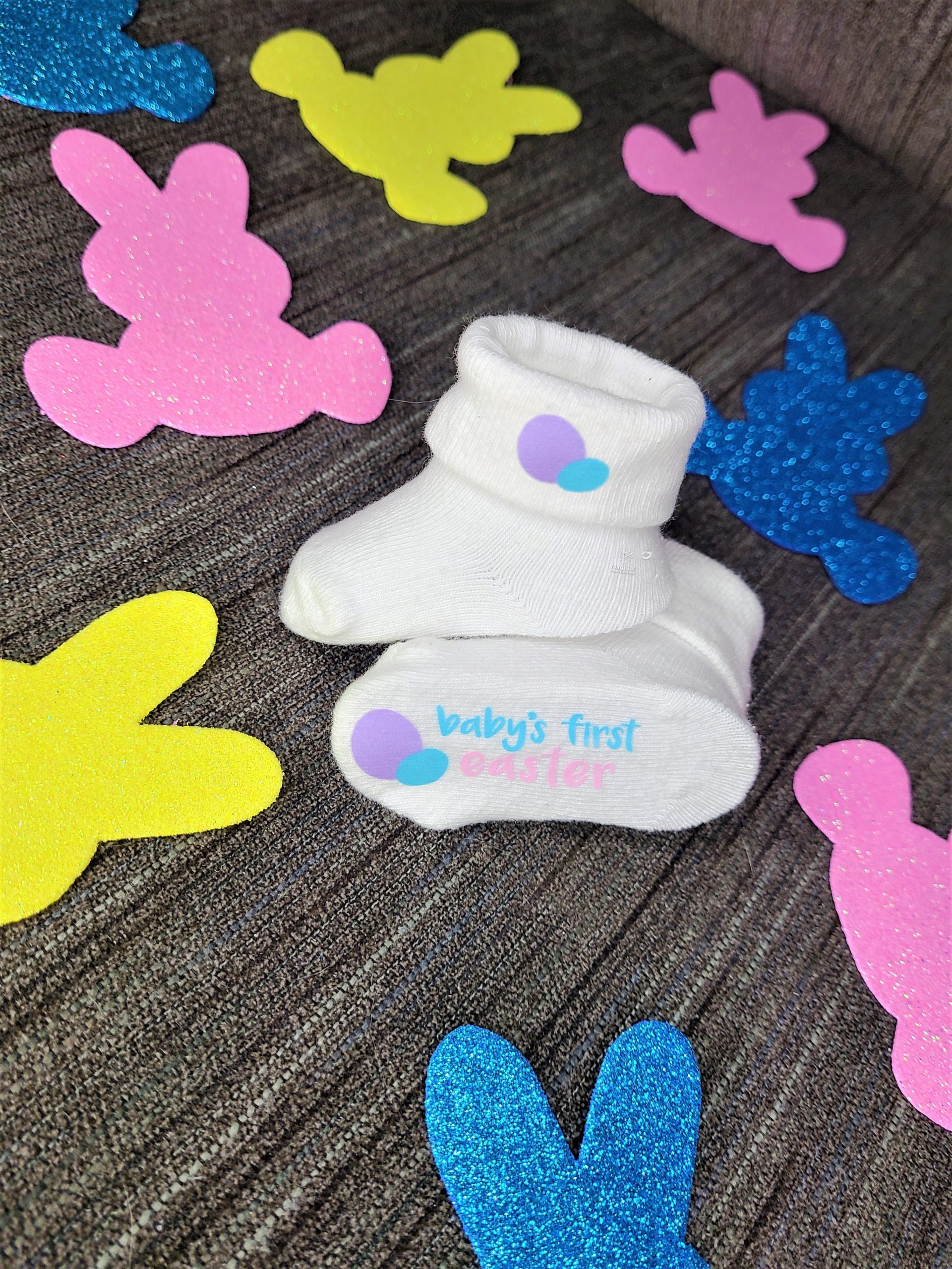 Sock Material: 69% Cotton, 19% Nylon, 9% Polyester, 3% Spandex; Graphics: Heat Transfer Vinyl with Sublimation Ink