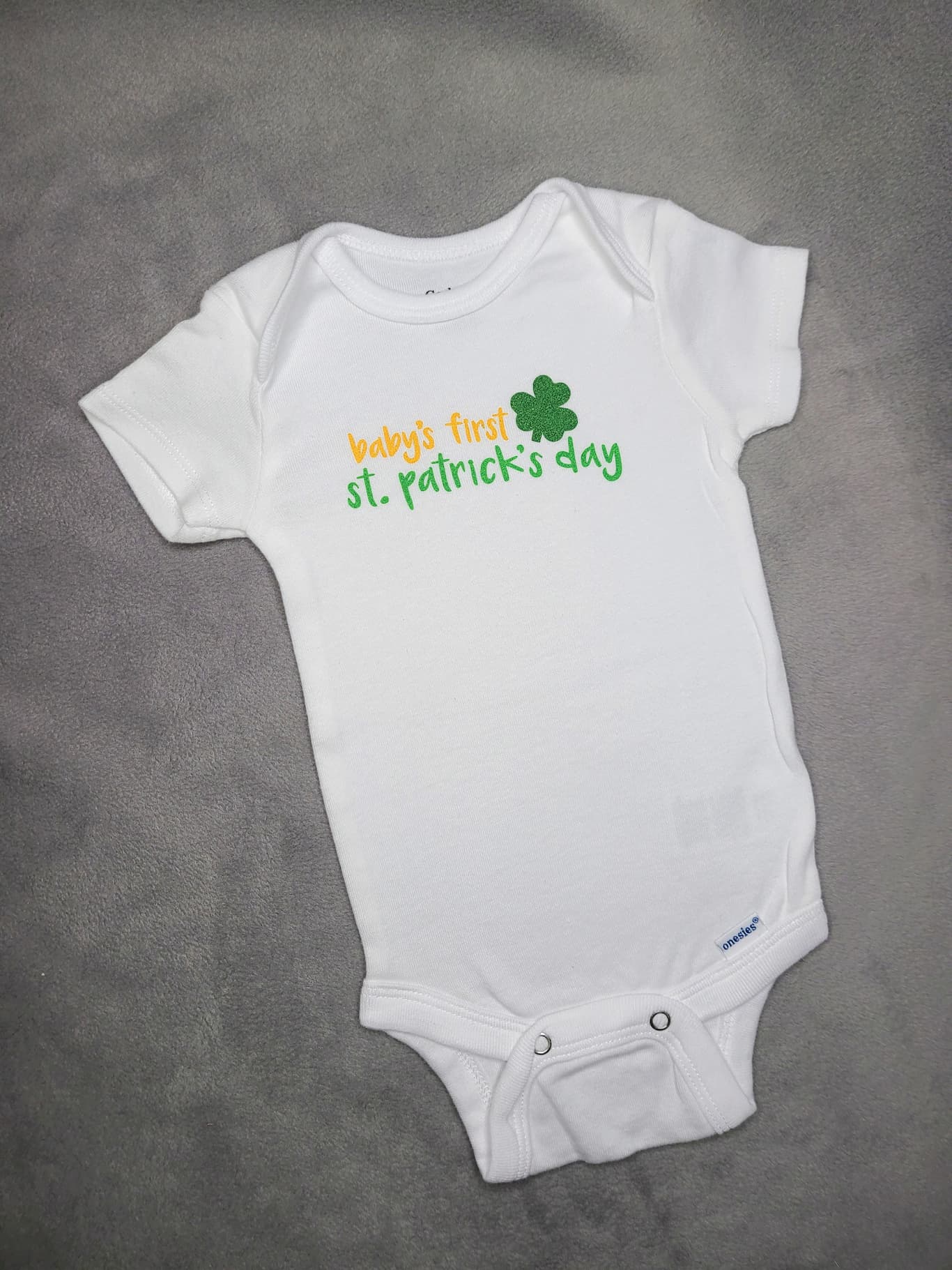 Your little one is lucky to have you. Help celebrate with a Baby’s First St. Patrick’s Day bodysuit! Perfect Baby Shower Gift for the parents-to-be (or to buy for your own precious one). All socks & bodysuits are made from high quality Onesies® brand (by Gerber®) clothing.