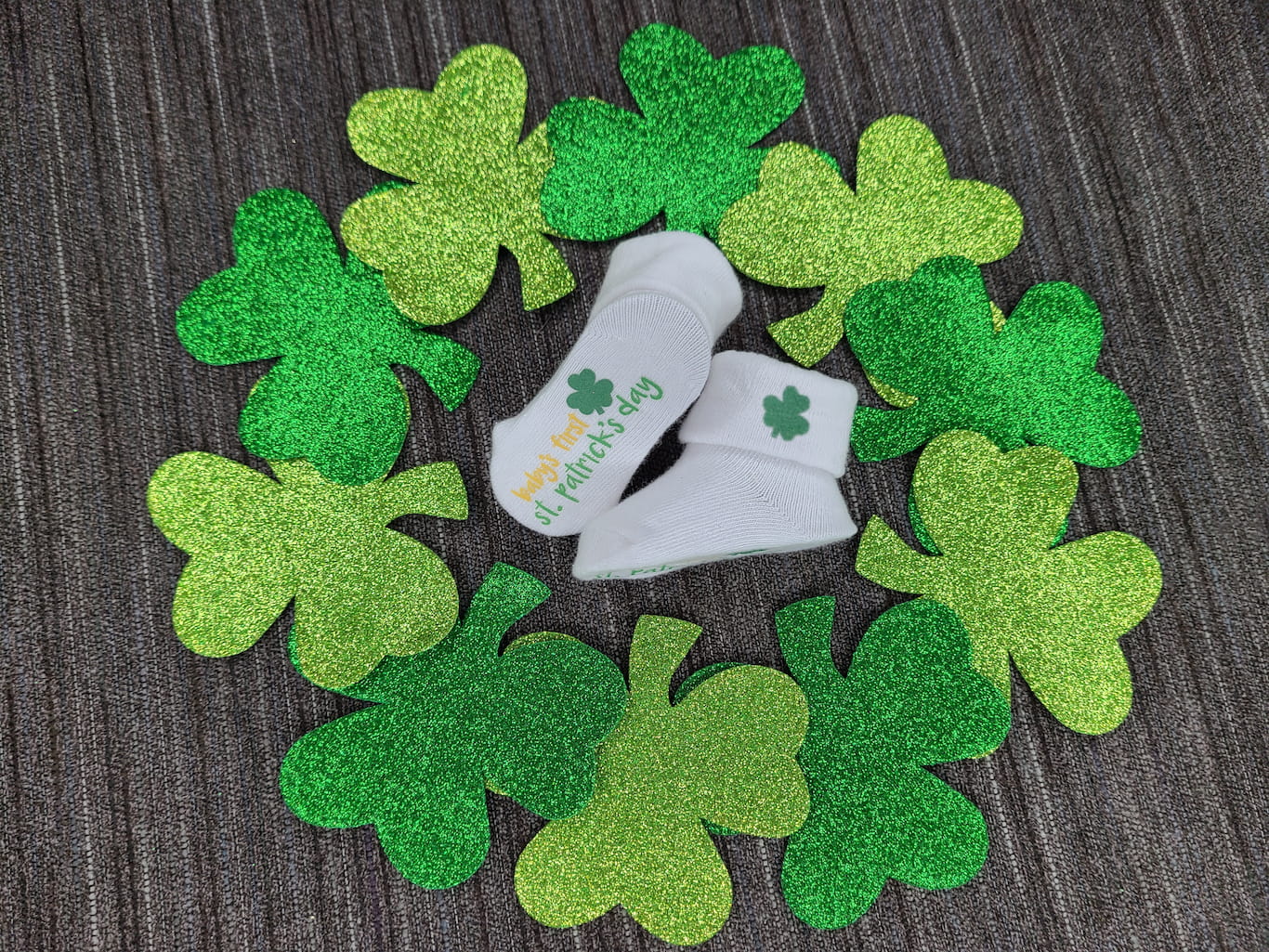 Sock Material: 69% Cotton, 19% Nylon, 9% Polyester, 3% Spandex; Graphics: Heat Transfer Vinyl with Sublimation Ink
