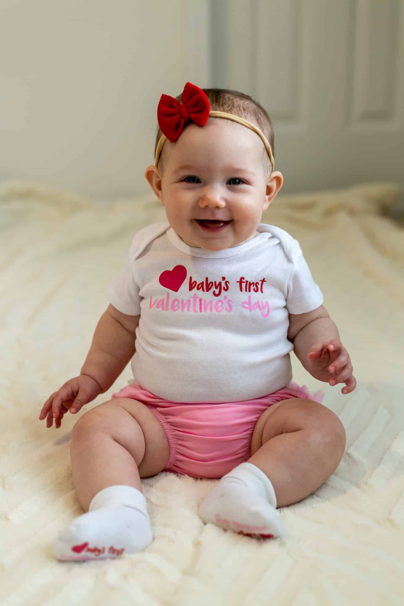 Show your love with this commemorative holiday bodysuit: Baby’s First Valentine’s Day! Perfect Baby Shower Gift for the parents-to-be (or to buy for your own precious one). All socks & bodysuits are made from high quality Onesies® brand (by Gerber®) clothing.